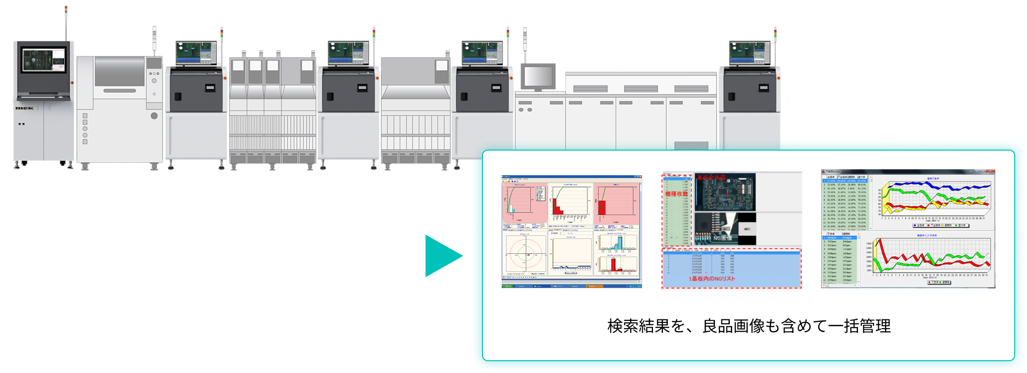 生産会社においては、最新の基板外観検査装置を各ラインに投入し、基板実装の品質向上に努めています。