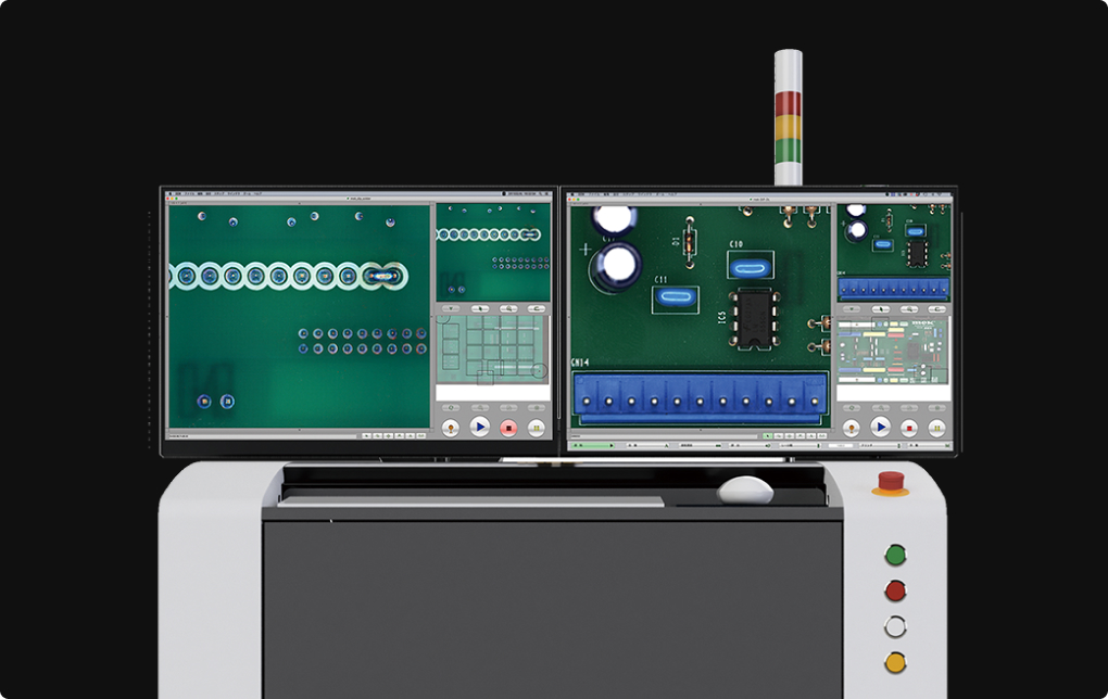 右側モニターは基板の上面、左側モニターは基板の下面を表示し、画面を切り替えることなく両面の状況確認が容易に行えます。