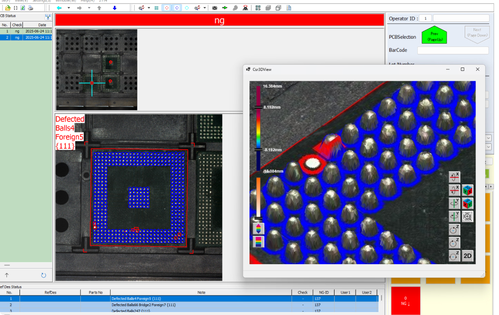 バンプの高さ計測により、未搭載・高さ違い・サイズ違いを検出