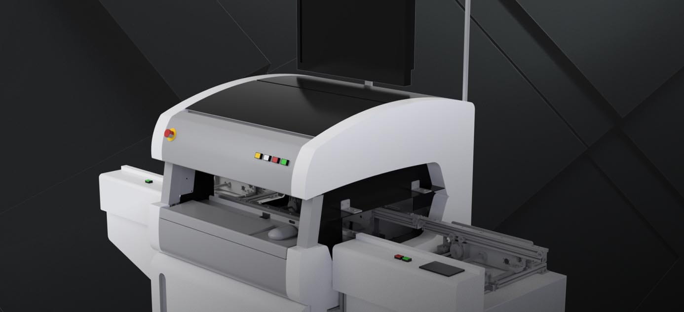 ポイントはんだ付け後にそのままワークをセットし、下面から検査する自立型(スタンドアローン型)の検査装置。