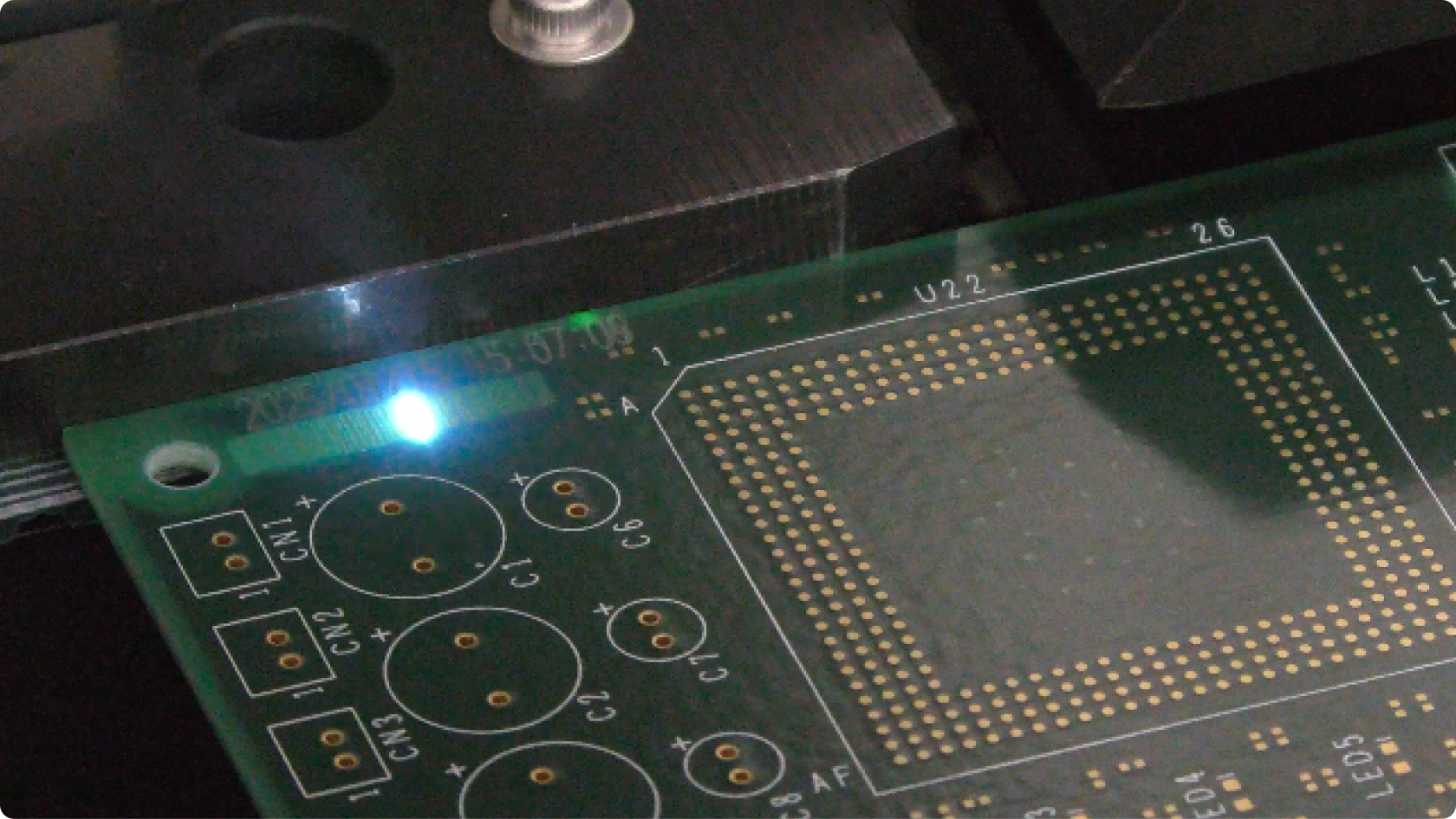 高精度・高速対応のレーザマーカをラインに組み込むことで、製造工程内でのリアルタイムなマーキング(印字)を実現。弊社の分離ローダーと連携し、基板セットの工数を削減。省人化・効率化を実現し、現場の負荷を大幅に軽減します。